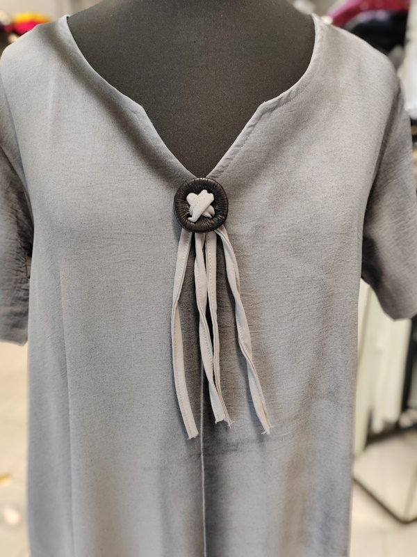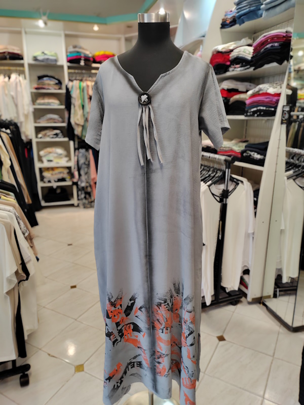 Očarajte v prefinjeni modni obleki T6085 v elegantni sivi barvi, ki navdušuje z laskavim A-krojem, priročnimi žepi in čudovito poslikavo z odličnimi detajli. Izdelana je iz visokokakovostne in koži prijazne turške mešanice viskoze, zaradi katere material izjemno lepo pade ob telesu in zagotavlja neprekosljivo udobje. Ta vsestranski in udoben kos je popolna izbira za ustvarjanje sproščenih, a nadvse šik stajlingov za prav vsako priložnost.