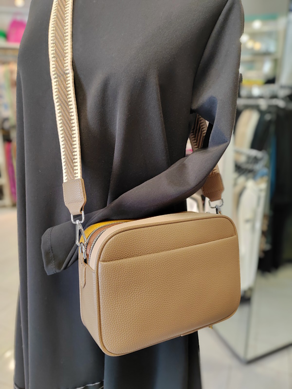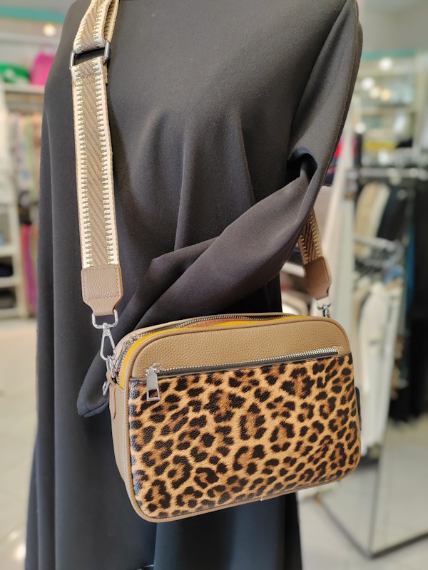 Modna torbica TR005 navdušuje z vsestranskim dizajnom, ki na eni strani ponuja drzen tigrasti vzorec, na drugi pa elegantno bež barvo. Je izjemno funkcionalna, saj z dvema večjima in dvema manjšima žepoma omogoča odlično organizacijo vaših stvari. S svojim širokim pasom in atraktivnim videzom je popoln modni dodatek za vsako priložnost.