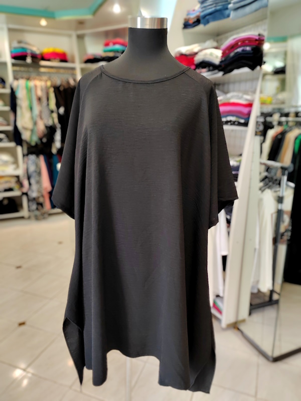 Odkrijte popolno udobje in eleganco s čudovito črno tuniko za močnejše postave P6010, ki se s svojim širokim A-krojem in stranskimi razporki popolnoma prilagodi vaši figuri ter skrije morebitne nepravilnosti. Ta kakovostna italijanska tunika je izdelana iz prijetnega, lahkega materiala, ki lepo pade ob telesu, njena univerzalna velikost (za konfekcijske številke 46-52) pa zagotavlja sproščen in šik videz za vsakodnevne priložnosti.