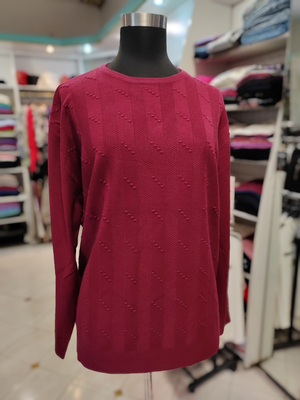 Rdeč pulover J5127 je izrazit in ženstven kos, ki lepo popestri outfit. Udoben širši kroj in elastičen material poskrbita za prijetno nošenje, vzorec v tkanju pa doda moderen poudarek.