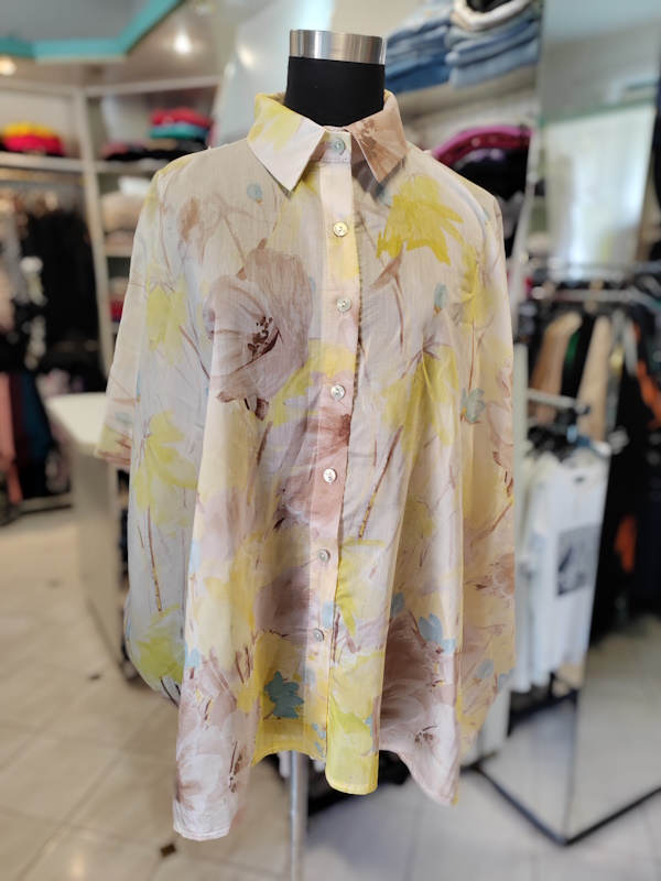 Osvetlite svoj videz z žensko srajco P6041 v nežni rumeni barvi, ki vas bo očarala s prefinjenim cvetličnim vzorcem in modnimi kimono rokavi. Izdelana je iz svilnato mehkega tencela, njen udoben kroj v univerzalni velikosti s podaljšanim hrbtnim delom pa poskrbi za brezhibno in laskavo prileganje. Ta elegantna in izjemno udobna srajca je popolna izbira za osvežitev vaše vsakodnevne ali poslovne garderobe.